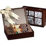 This wooden Pure Bribery Chocolate Photo Gift Box is a unique and refreshing gift idea. Excite that special someone with this wooden box, lined in soft felt with a window lid to place their most precious pictures. Open this gift box to reveal a collection of mouth-watering treats including chocolate covered nuts, an assortment of Ghirardelli truffle squares, and mini pretzels smothered in chocolate. For a finishing touch, this gift basket is hand-tied with a gift bow.Send a meaningful gift that will tickle the tastbuds this holiday season with the Chocolate Photo Gift Box from Broadway Basketeers. This unique gift includes a wooden keepsake box that is lined in felt with a five-window lid that holds important memories. The box comes overflowing with delicious chocolate covered nuts, an assortment of Ghirardelli truffle squares, and mini pretzels smothered in chocolate to show how much you care. All products inside this gift are certified kosher for worry-free giving. For a finishing touch, this gift basket is hand-tied with a gift bow.